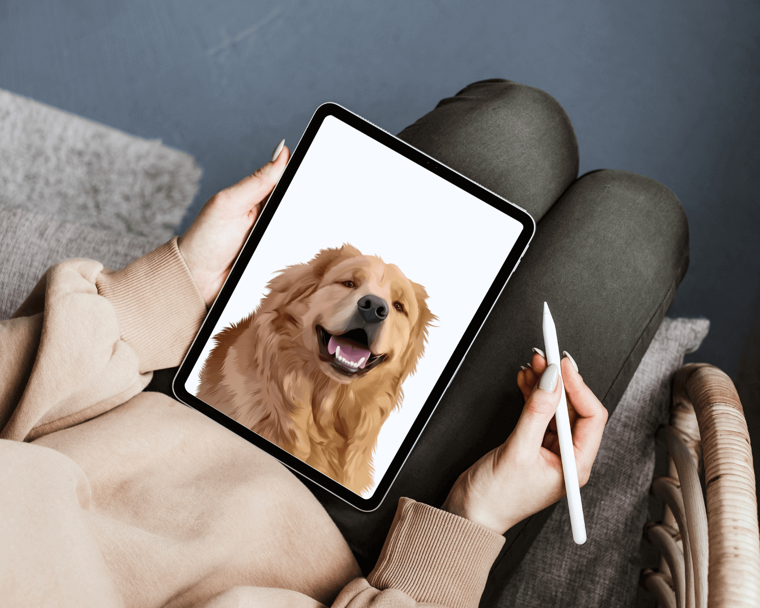 Our talented artists meticulously hand-illustrate each pet portrait, ensuring a unique and personal touch. Using a refined and highly technical process, we create stunning portraits without relying on filters, apps, or AI.